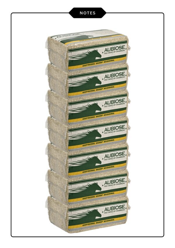 - Around 7 to 8 bales of Aubiose to create your bed in an average 12 x 12 stable.